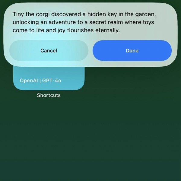 This iOS Shortcut calls OpenAI's ( GPT-4o | DALL·E 3) latest models using your own personal API key.